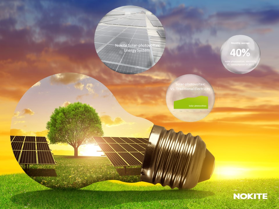 Decarburization in power industry is key to the success of Net Zero Emission Plan. Policy from China central government came out that Zero Carbon Emission was planned to be realized by 2060. Nokite complied with the policy and fulfilled the responsibility of enterprises to impel the transition from traditional electricity to clean power, trying to balance enterprise development and responsibility to protect environment. In July 2021, Nokite grounded and officially launched the solar-photovoltaic system. According to incomplete statistics, the electricity generated by the solar-photovoltaic system averagely accounted for 40% of the total monthly consumption in 2021.